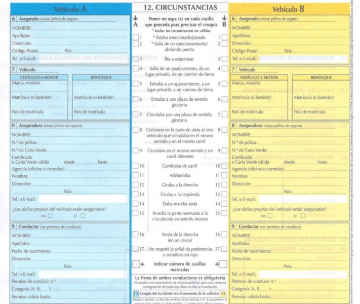 Por último, cuando ambos implicados estén de acuerdo en lo ocurrido y se hayan rellenado correctamente todos los campos, será necesaria la firma de los dos conductores para darle validez al documento. Cada uno se quedará con una de las copias para enviarla después a su compañía aseguradora.